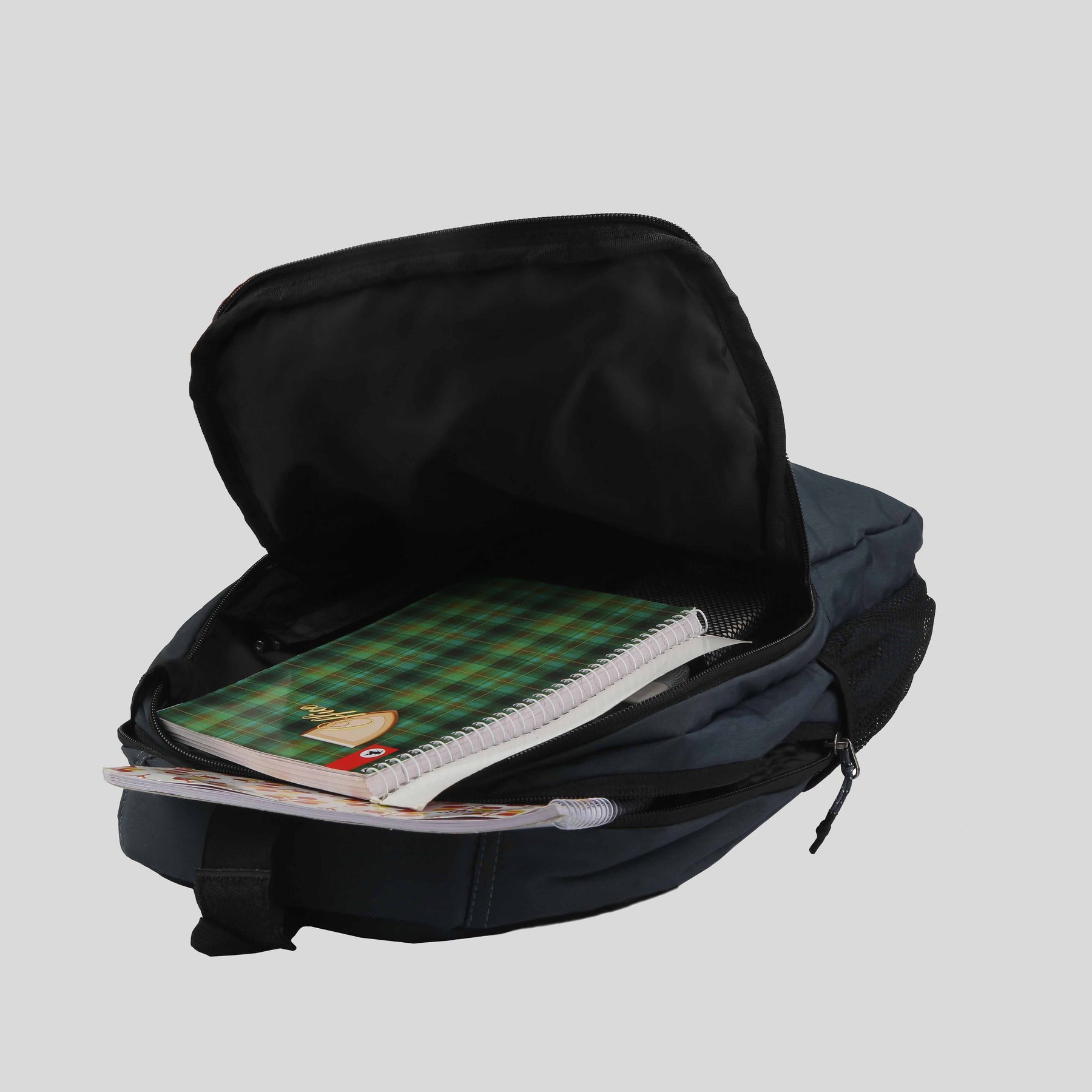 This backpack is spacious enough to accommodate all your essentials and gadgets, including laptops and mobile devices. It features one main compartment, three external pockets with zip closures, and two net stash pockets for water bottles and other necessities.