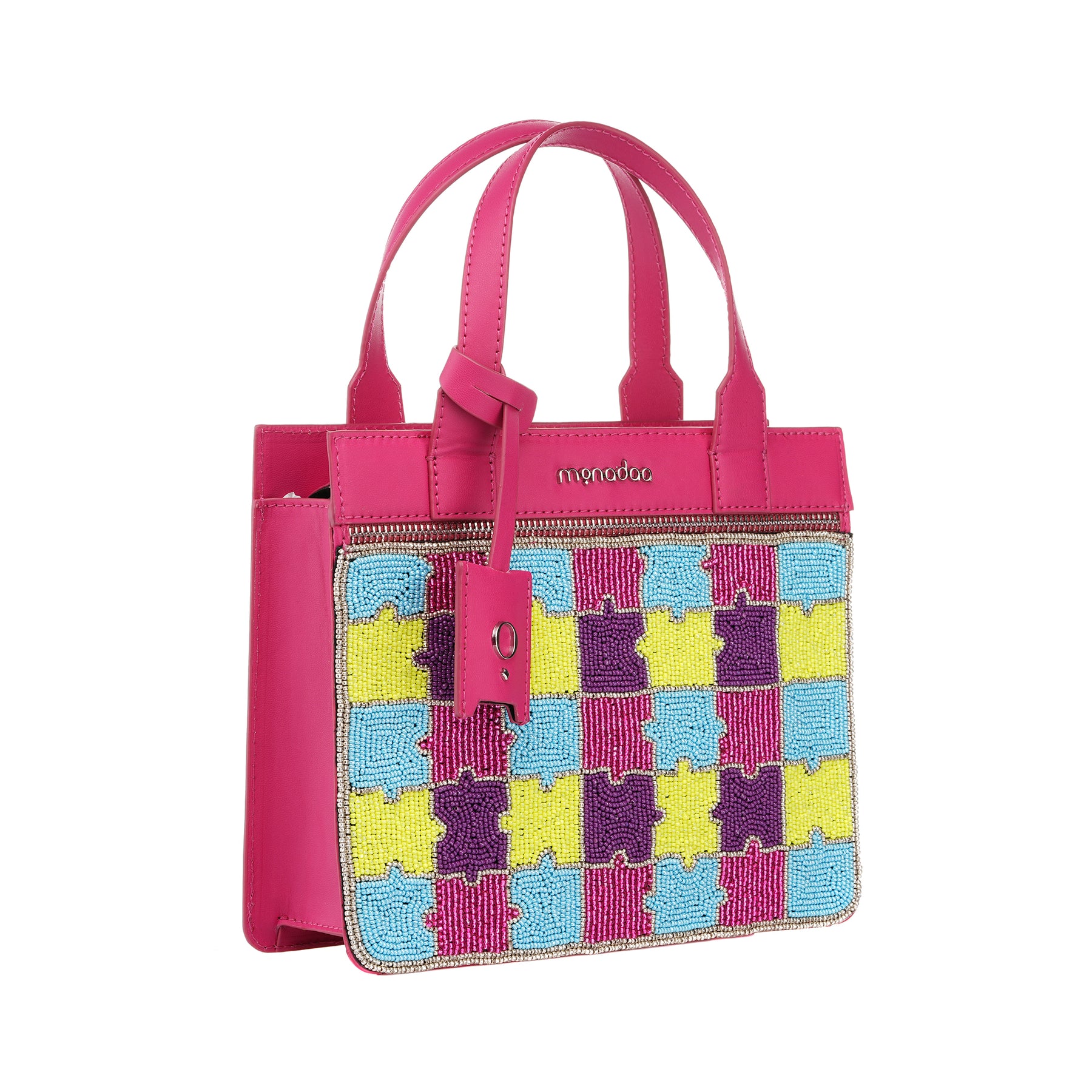 It Features Curved Handle and a Square-shaped Silhouette That Give It a Contemporary Look. It Also Features an Understated Puzzle Design That Adds Visual and Textural Interest to the Minimalist Design. The Eye-catching Beads Ensure the Bag Will Always Stand Upright, so You Can Proudly Display It When Not in Use.